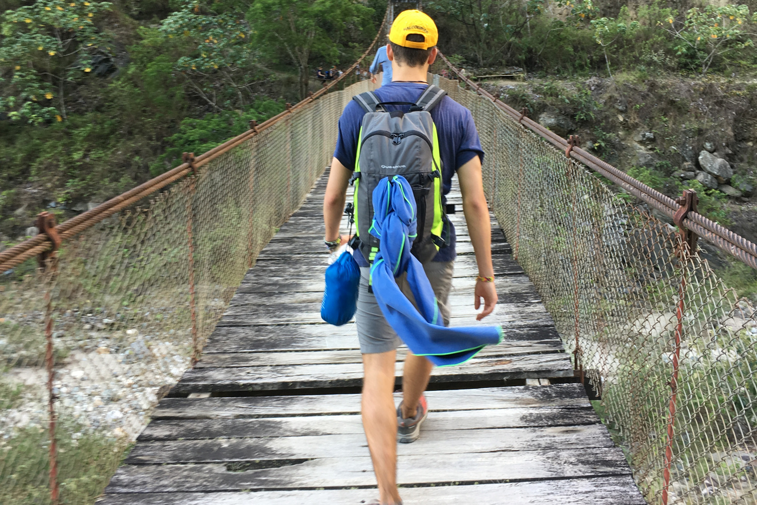 Lucas muy bien equipado en su viaje solidario a Perú. |