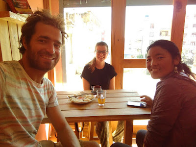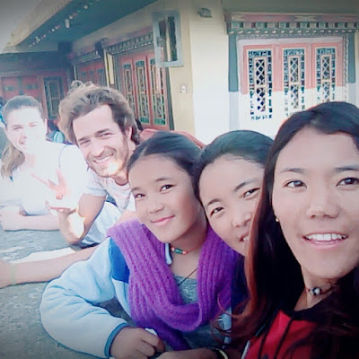 Miren con otro voluntario y varias jóvenes de la ONG de Katmandú |